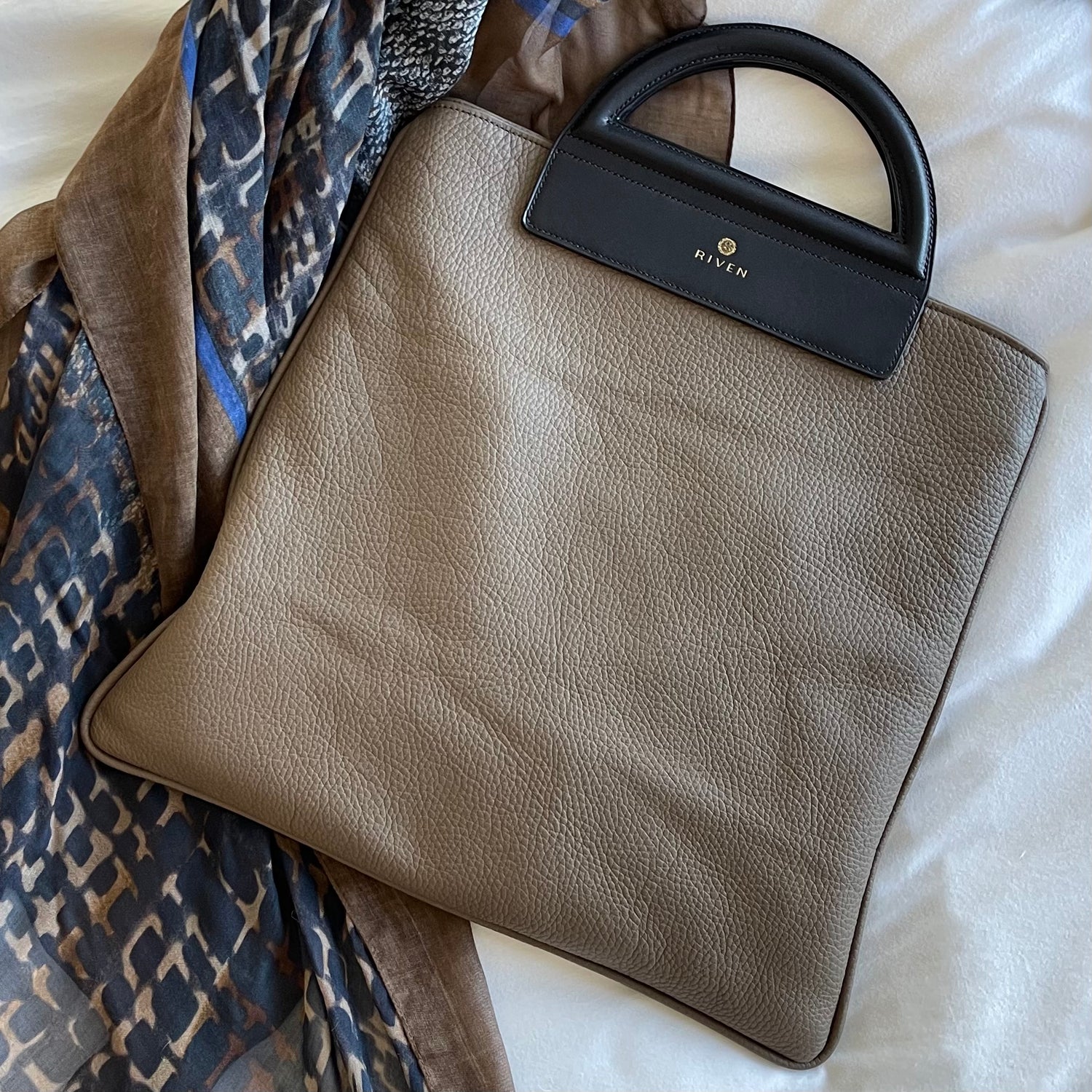 From the studio of Brooks Atelier come handbags under the new moniker of Riven Handmade. The Handled Tote is made of exquisitely grained taurillon from France with dimensional handles of vegetable tanned leather from Italy. Interior is Italian suede with hidden magnetic closure.